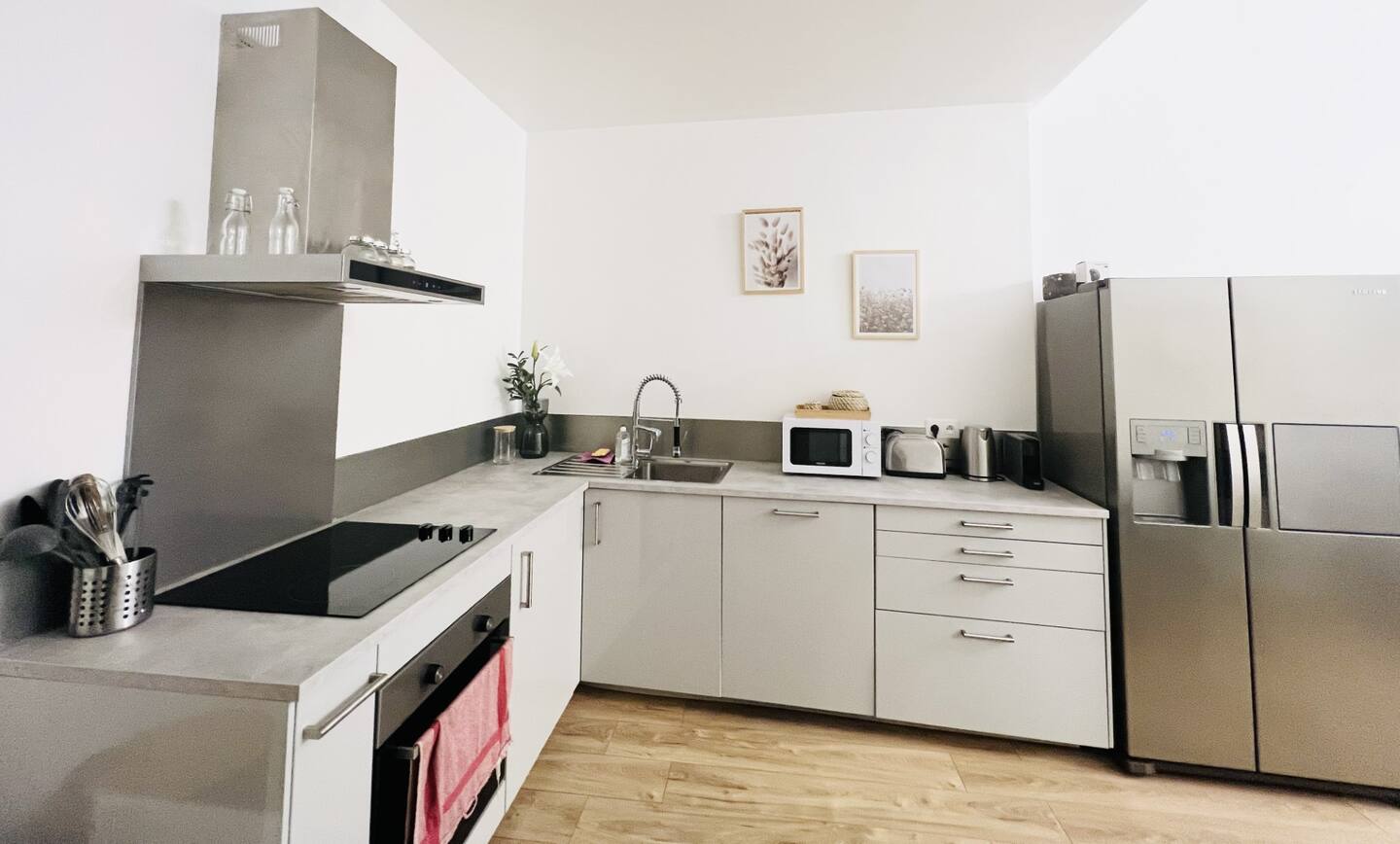 La cuisine est entièrement équipée avec des appareils modernes et fonctionnels,vous permettant de préparer de délicieux repas avec facilité. La salle de bains est élégante et moderne,offrant un espace de détente parfait après une journée de découverte de la ville.