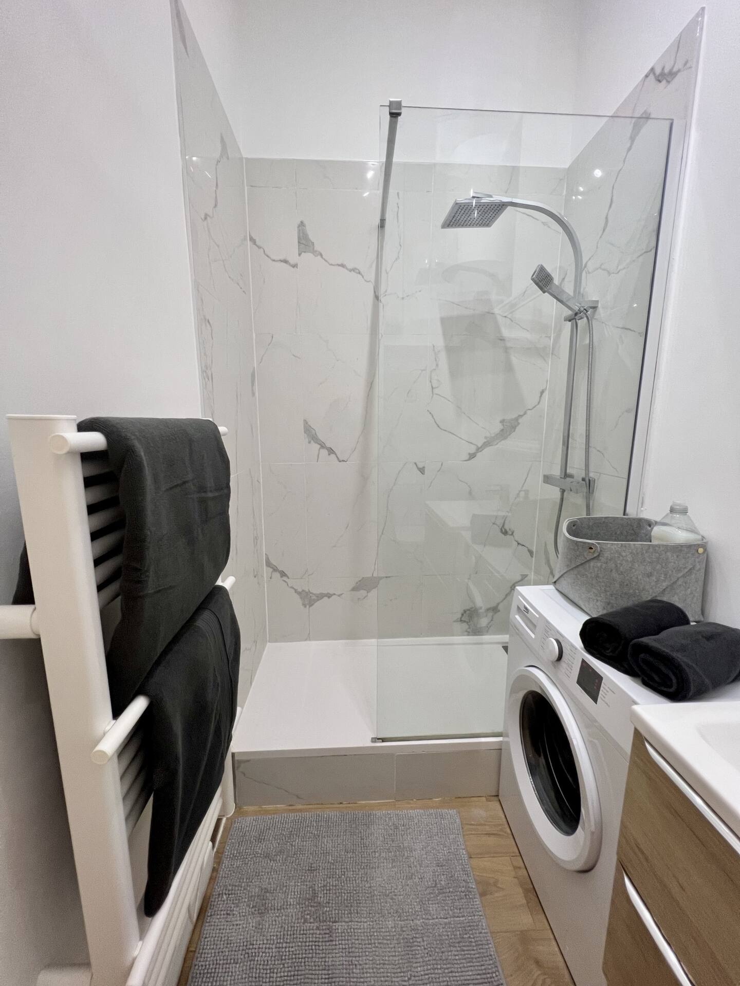 La salle de bain saura vous séduire,présentant des finitions soignées,elle offre une grande douche à l'italienne et une grande vasque.